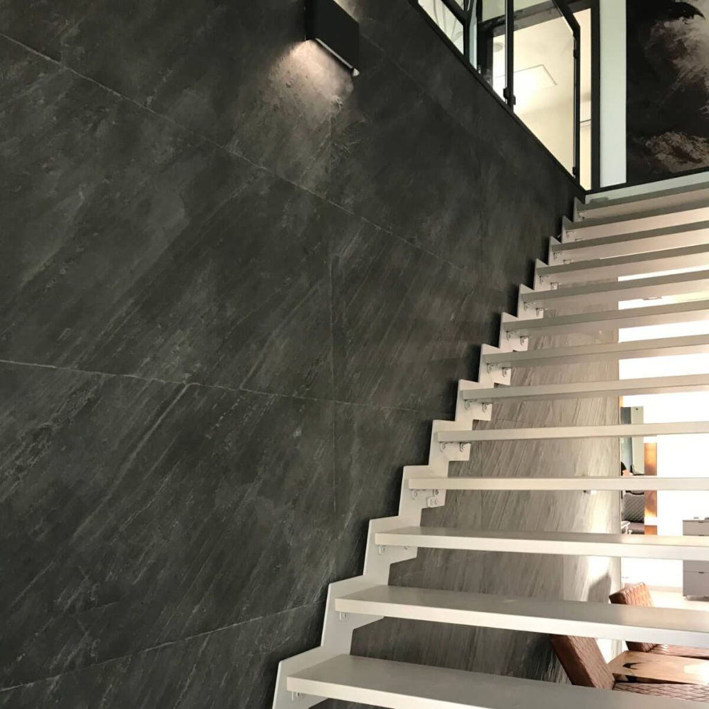 · Łupek: Charakteryzuje się warstwową strukturą i ciemniejszą kolorystyką (grafity, czernie, głębokie zielenie). Idealny do wnętrz loftowych i industrialnych.